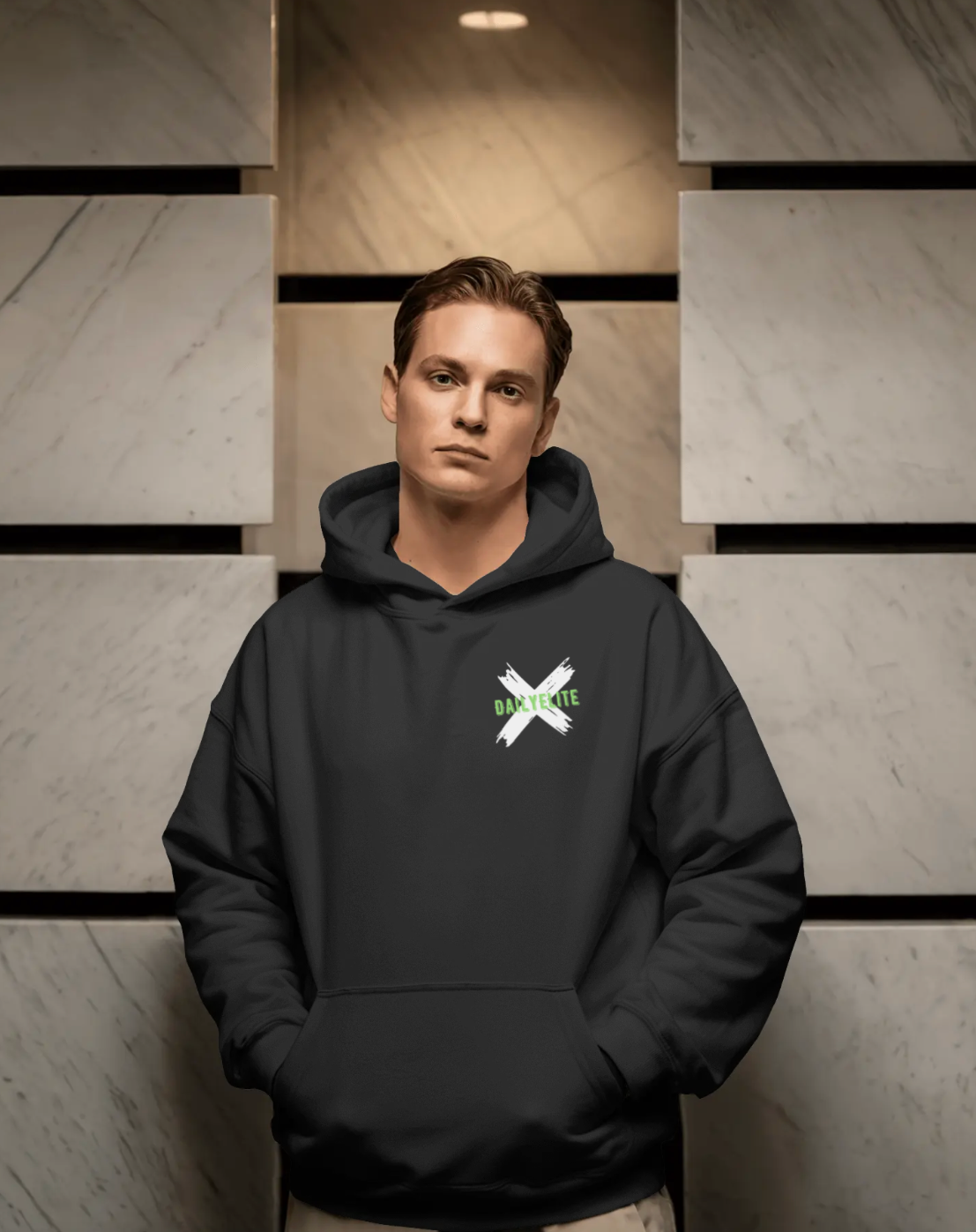 De DAILYELITE hoodie is meer dan een kledingstuk. Het is een statement. Met het iconische witte X-design en contrasterende neongroene letters trek jij de lijn tussen standaard en elite.