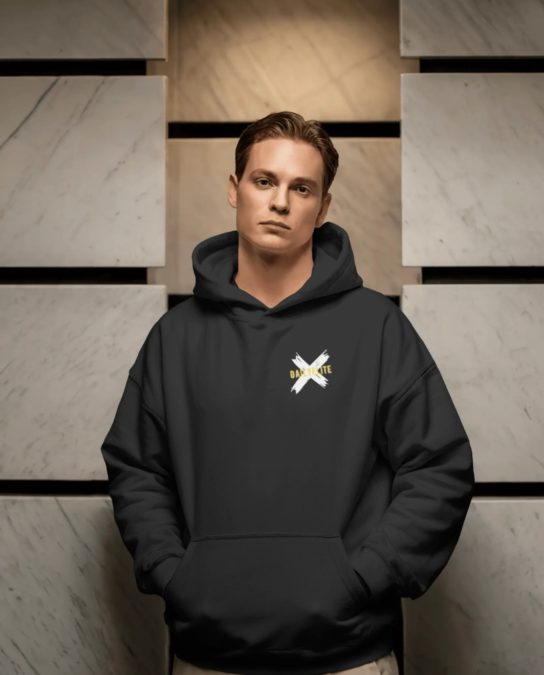 De DAILYELITE hoodie is meer dan een kledingstuk. Het is een statement. Met het iconische witte X-design en contrasterende neongroene letters trek jij de lijn tussen standaard en elite.