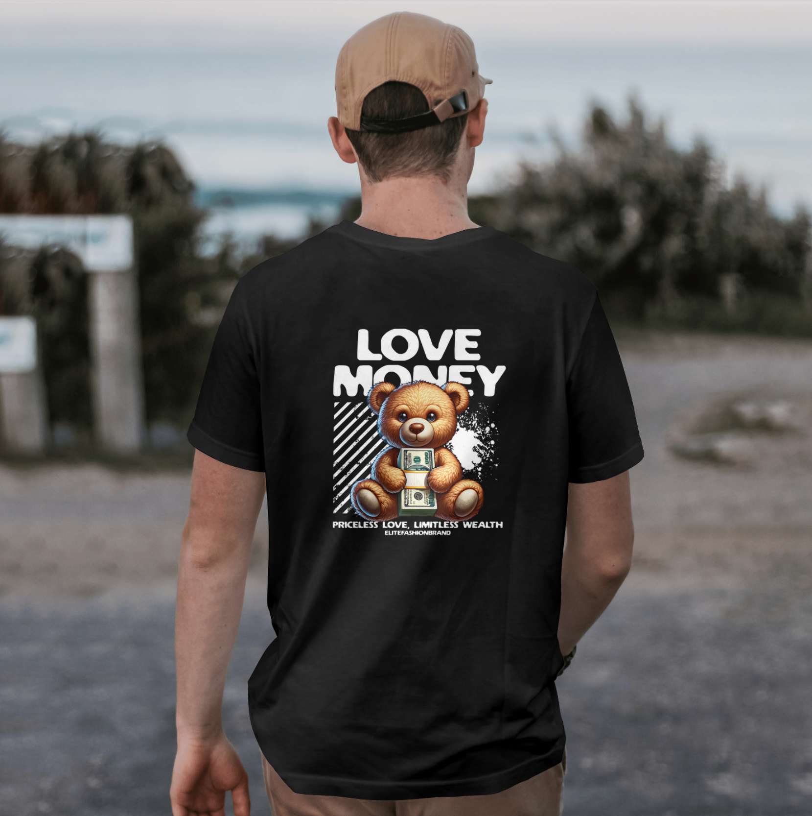 Ben jij een echte liefhebber van luxe en stijl? Maak kennis met ons opvallende "LOVE MONEY" T-shirt! Dit T-shirt brengt twee van de meest begeerde dingen samen: liefde en geld. Het perfecte statement voor wie houdt van het goede leven en niet bang is om dat te laten zien!